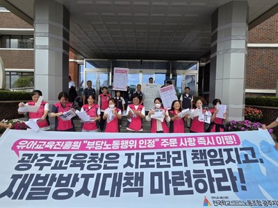 [광주=뉴스핌] 박진형 기자 = 광주학교비정규직연대회의가 "정규직에 비해 절반에 머무르는 차별적 임금 체계를 개선해야 한다"고 촉구했다.