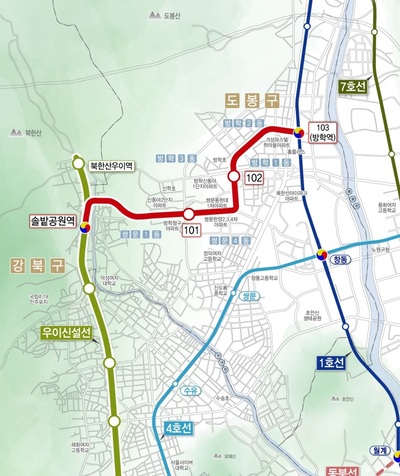 [서울=뉴스핌] 이경화 기자 = 우이방학경전철(우이신설 연장선)이 본격적인 사업 추진단계에 들어섰다. 우이방학경전철 사업은 우이신설선을 방학역까지 연결하는 사업으로 방학역이 그 출발역이 된다. 이렇게 되면 우이신설선에서 1호선 방학역 간 직접 환승이 가능해져 도봉구 주민을 비롯한 동북권 주민들의 교통접근성이 크게 향상될 전망이다.