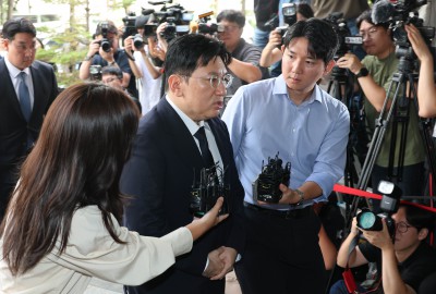 | [서울=뉴스핌] 김학선 기자 = 자본시장법상 부정거래행위 금지 위반 혐의를 받는 방시혁 하이브 의장이 지난 15일 오전 피의자 신분으로 조사를 받기 위해 서울 마포구 서울경찰청 금융범죄수사대로 출석하고 있다. 2025.09.15 yooksa@newspim.com |