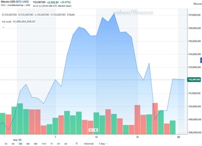 | 비트코인 차트, 자료=야후 파이낸스, 2025.09.30 koinwon@newspim.com |