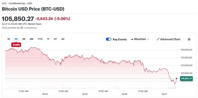 | 비트코인 가격 차트, 자료=야후 차이낸스, 2025.10.20 koinwon@newspim.com |