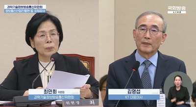 황 의원은 "김 대표가 앞서 피해 고객 보상을 언급했지만, 이는 소액결제 피해자 보상이지 개인정보 유출 피해에 대한 배상이 아니다"라며 "KT는 용어부터 다시 써야 한다. 배상은 잘못에 대한 변상이고, 보상은 시혜적 의미"라고 질타했다.