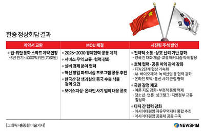 한중 두 나라가 2020년 체결한 4천억 위안(70조원) 규모 통화 스와프 협정이 올해 10월 10일부로 만료됐다. 이에 따라 경주 아시아태평양경제협력체(APEC) 정상회의 참석을 계기로 시 주석의 11년 만에 국빈 방한과 이 대통령과의 첫 한중 정상회담에서 재연장에 합의했다.