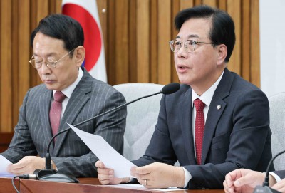 송언석 국민의힘 원내대표는 9일 국회에서 기자간담회를 열고 "(대장동 항소 포기는) 피의자 이재명 대통령에 대한 공소 취소를 위한 빌드업 1단계 작업"이라며 "국회 차원의 긴급 현안질의를 즉시 열고 국정조사부터 신속해 진행해 대장동 비리의 전모를 낱낱이 국민께 밝히기를 제안한다"고 밝혔다.