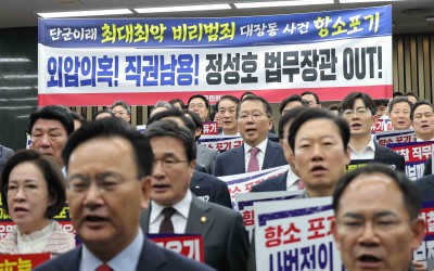 국민의힘은 우선 원외에서 여론전에 힘을 싣는 모습이다. 이날 대검·법무부 규탄대회를 실시한데 이어 12일에는 국회 본관 앞에서 전국 당원들이 모이는 대규모 규탄대회를 개최할 계획이다.