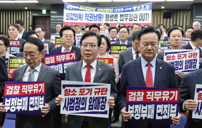 그렇기 때문에 지금 검찰의 항소 포기 사건에 대해서는 행정적인 절차로 볼 것이 아니라 권력의 외압으로 보고 여기에는 지금 당당히, 치열하게 맞서야 되는 것이다. 그리고 이에 대해서 국민들이 아직까지도 전체 다 알고 계시지 않을 거예요. 대한민국 국민 모두가 뉴스 보는 게 아닙니다. 그러면 이 부분을 알리기 위해서 국민의힘뿐만 아니라 많은 언론들이 좀 같이 나서주셔야 된다라고 생각합니다.