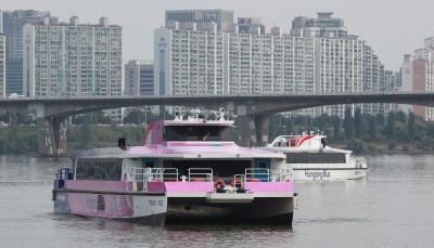 | [서울=뉴스핌] 최지환 기자 = 지난 1일부터 다시 운항을 재개한 한강버스가 3일 서울 강남구 한강버스 압구정선착장을 떠나고 있다. 2025.11.03 choipix16@newspim.com |