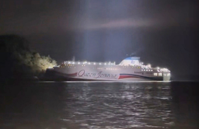 | 19일 오후 8시 17분쯤 전남 신안군 장산도 남방 인근 해상에서 퀸제누비아2호가 좌초돼 해경이 구조 작업을 벌이고 있다. [사진=목포해경] 2025.11.19 ej7648@newspim.com |