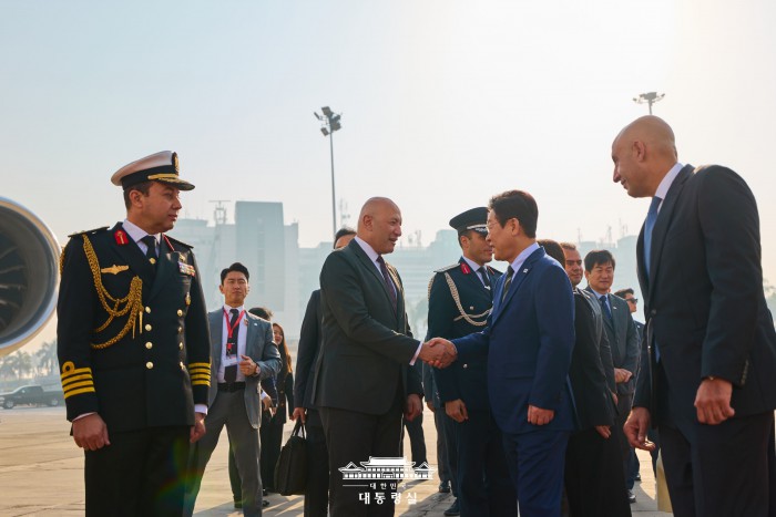 | [서울=뉴스핌] 이집트 공식 방문을 마친 이재명 대통령이 지난 21일(현지시간) 남아공 주요 20개국(G20) 정상회의 참석을 위해 카이로 국제공항에서 공군 1호기로 이동하고 있다. [사진=대통령실] 2025.11.22 photo@newspim.com |