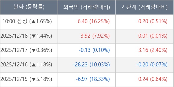 [표] 주요 기관별 순매매량 (단위 만주)