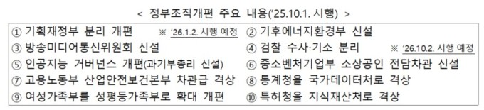 기재부 외에도 기후 변화, 인공지능(AI) 대전환 등 미래위기에 대응하기 위해 기후에너지환경부를 신설하는 등 새 정부 정책 목표에 맥을 함께하는 정부부처 개편도 추진됐다. 17년 만에 과학기술 부총리제를 부활시킨 것도 과학기술 중심의 거버넌스를 확립하겠다는 취지다.