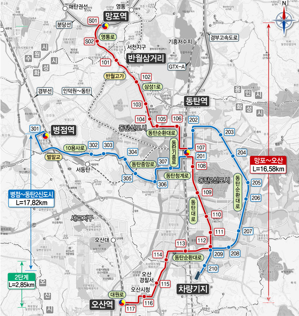 동탄 트램은 화성시·수원시·오산시가 공동 추진하는 총길이 34.2㎞의 도시철도 사업이다. SRT와 GTX(수도권 광역급행철도)가 지나는 동탄역을 비롯해 병점역, 망포역, 오산역 등을 연결하는 노선이다. 36개 정거장과 차량기지 1곳을 짓게 된다.