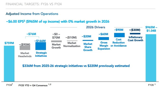 데이먼 리 최고재무책임자(CFO)는 "지난해 12월 투자자 설명회에서 2023년 조정 영업이익 5억 5300만 달러 대비 2026년 조정 영업이익을 3억 5000만~4억 5000만 달러 증가시킬 것으로 제시했다"며 "그러나 전략 실행에 대한 확신과 추가 개선 여력을 고려해 목표치를 약 5000만 달러 상향 조정한다"고 밝혔다.