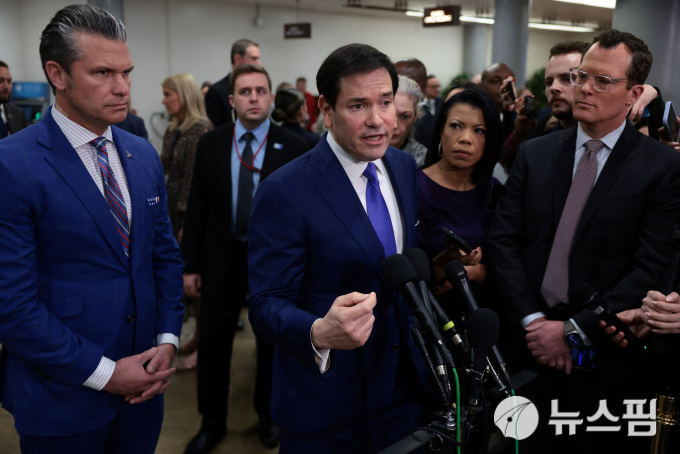 | 마코 루비오 미 국무장관이 2026년 1월 7일 미국 워싱턴 D.C. 국회의사당에서 베네수엘라 정세 관련 비공개 브리핑이 열린 날, 언론을 상대로 발언하고 있다. [사진=로이터 뉴스핌] |