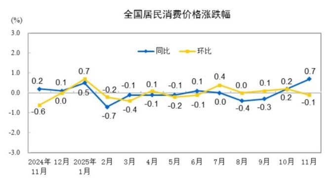 절상증권(浙商證券)은 12월 CPI의 전년 동기 대비 상승률이 0.7%로 전달과 동일한 수준을 유지할 것으로, 전월 대비로는 하락세에서 보합으로 전환될 가능성이 있다고 밝혔다. 또 12월 PPI의 전년 대비 하락 폭은 -2.2%에서 -1.9%로 다소 축소될 것으로 내다봤다.