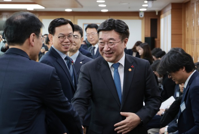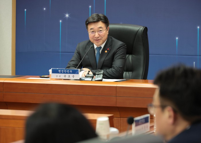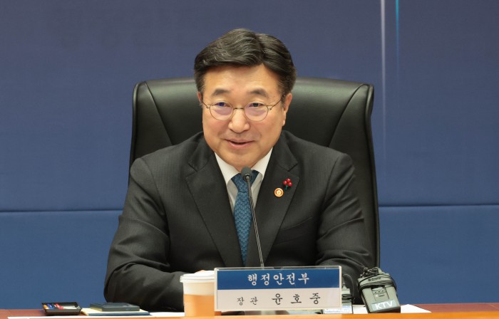 [서울=뉴스핌] 이길동 기자 = 윤호중 행정안전부 장관이 24일 서울 종로구 정부서울청사에서 열린 제8회 중앙지방정책협의회에서 참석자들과 인사를 하고 있다. 2025.12.24 gdlee@newspim.com