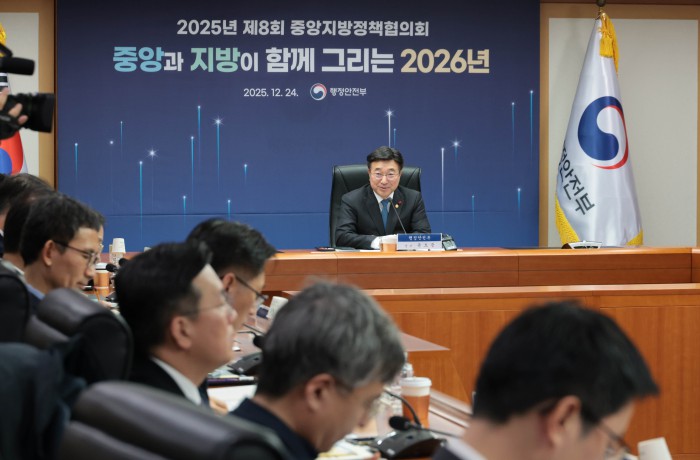 [서울=뉴스핌] 이길동 기자 = 윤호중 행정안전부 장관이 24일 서울 종로구 정부서울청사에서 열린 제8회 중앙지방정책협의회를 주재하며 모두 발언을 하고 있다. 2025.12.24 gdlee@newspim.com