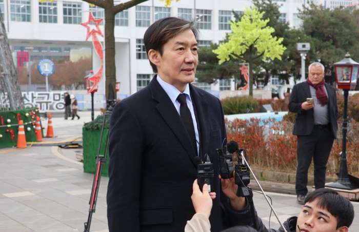 [광주=뉴스핌] 박진형 기자 = 조국 조국혁신당 대표가 24일 오후 광주 동구 5.18민주광장에 마련된 광주대표도서관 붕괴 참사 희생자 시민분향소를 방문한 뒤 취재진과 만나 내년 지방선거 관련 발언을 하고 있다. 2025.12.24 bless4ya@newspim.com