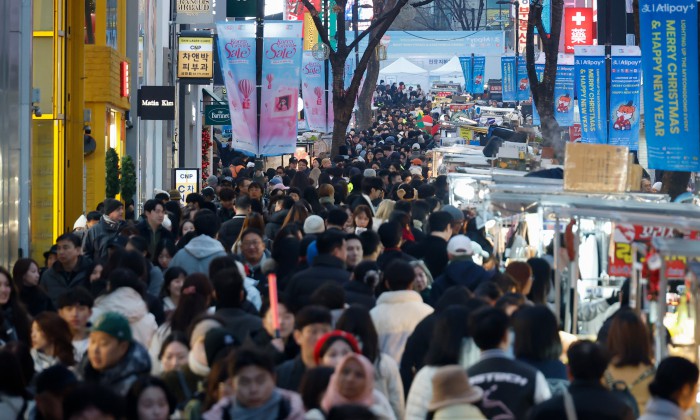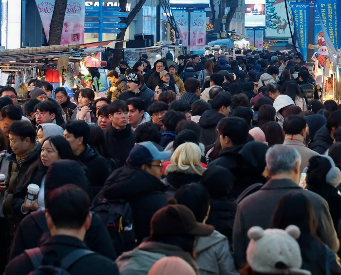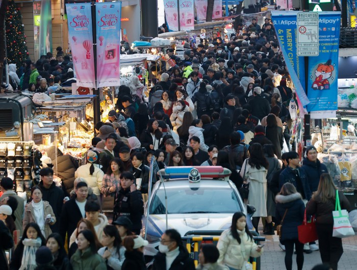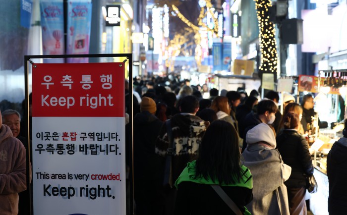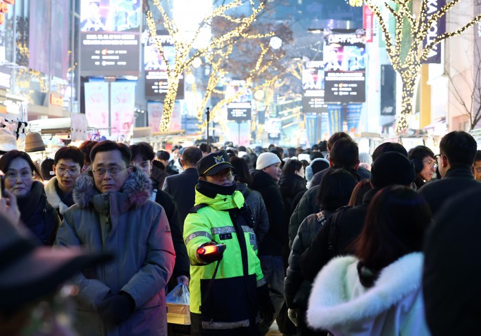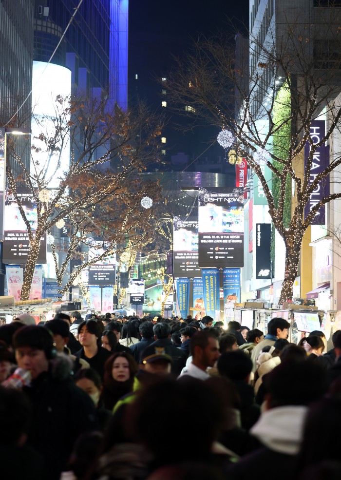 [서울=뉴스핌] 류기찬 기자 = 크리스마스 이브인 24일 오후 서울 중구 명동거리가 인파로 붐비고 있다. 2025.12.24 ryuchan0925@newspim.com