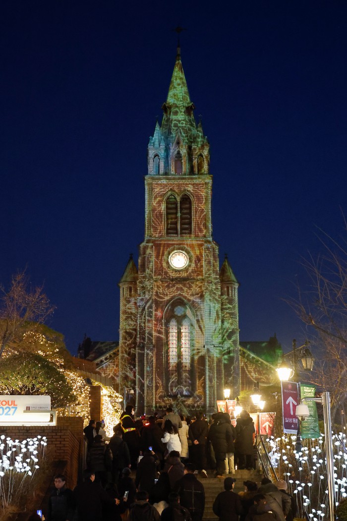 [서울=뉴스핌] 류기찬 기자 = 크리스마스 이브인 24일 오후 서울 중구 명동성당이 인파로 붐비고 있다. 2025.12.24 ryuchan0925@newspim.com