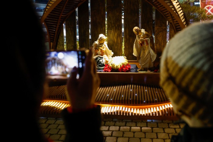 [서울=뉴스핌] 류기찬 기자 = 크리스마스 이브인 24일 오후 서울 중구 명동성당에 성탄구유가 설치되어 있다. 2025.12.24 ryuchan0925@newspim.com