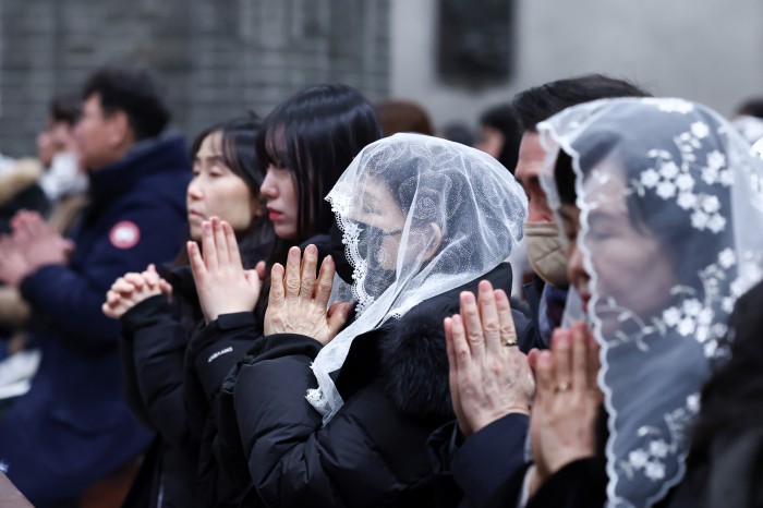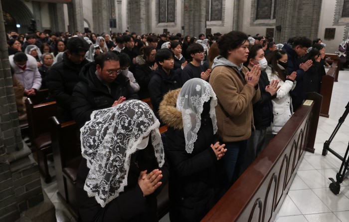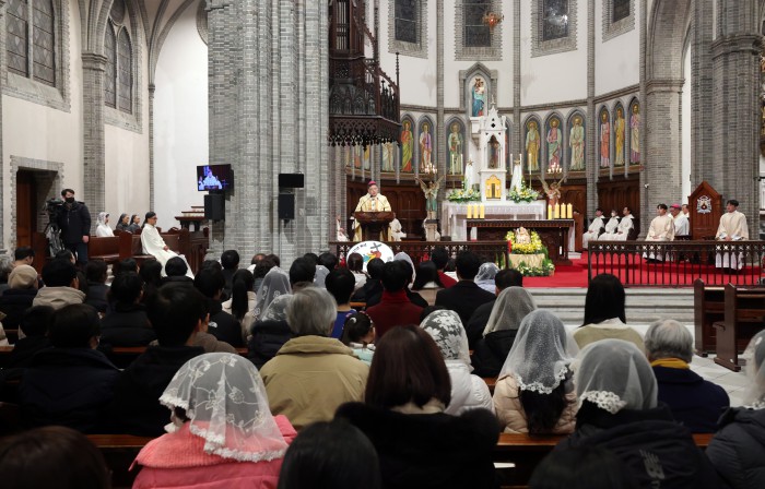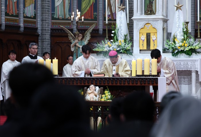 [서울=뉴스핌] 최지환 기자 = 성탄절인 25일 새벽 서울 중구 명동대성당에서 신자들이 주님 성탄 대축일 밤 미사를 봉헌하고 있다. 2025.12.25 choipix16@newspim.com