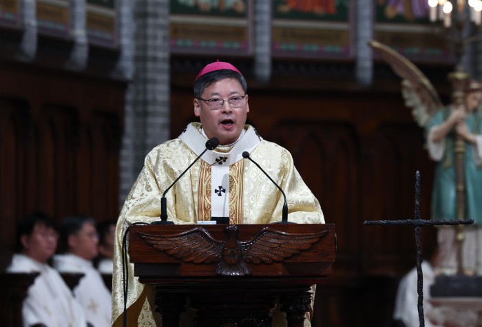 [서울=뉴스핌] 최지환 기자 = 정순택 천주교 서울대교구 대주교가 성탄절인 25일 새벽 서울 중구 명동대성당에서 주님 성탄 대축일 밤 미사에 입장하고 있다. 2025.12.25 choipix16@newspim.com