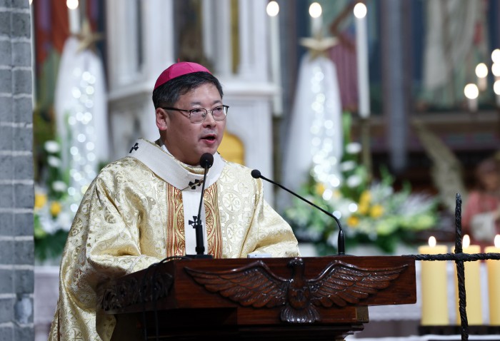 [서울=뉴스핌] 최지환 기자 = 정순택 천주교 서울대교구 대주교가 성탄절인 25일 새벽 서울 중구 명동대성당에서 주님 성탄 대축일 밤 미사를 집전하고 있다. 2025.12.25 choipix16@newspim.com